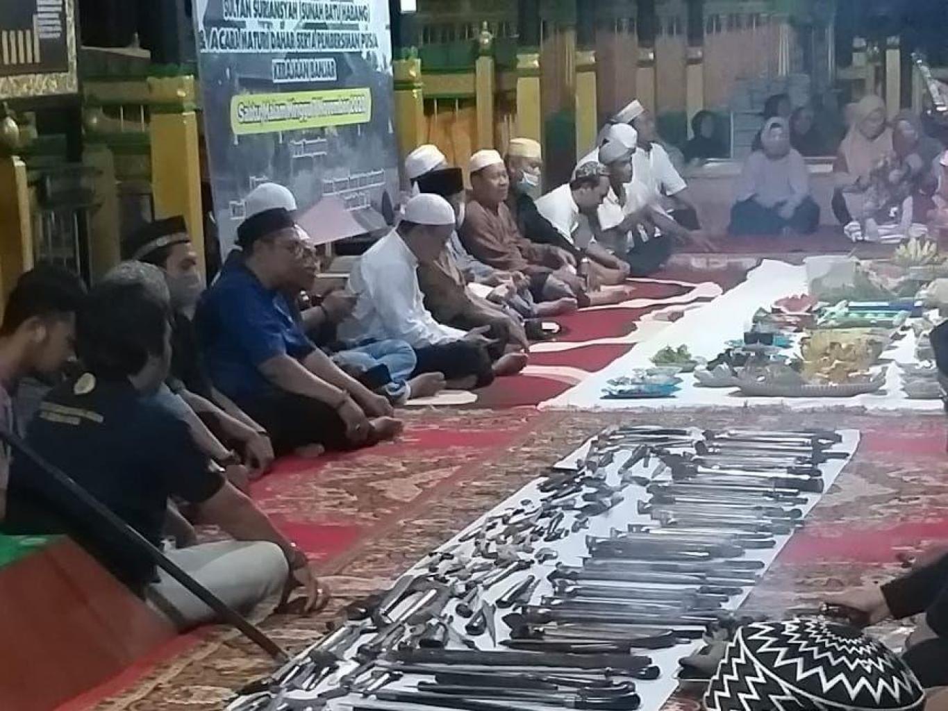 Meantari (memberikan) wadai banjar dan menyuguhkan peninggalan sejarah yaitu benda pusaka pada bulan maulid