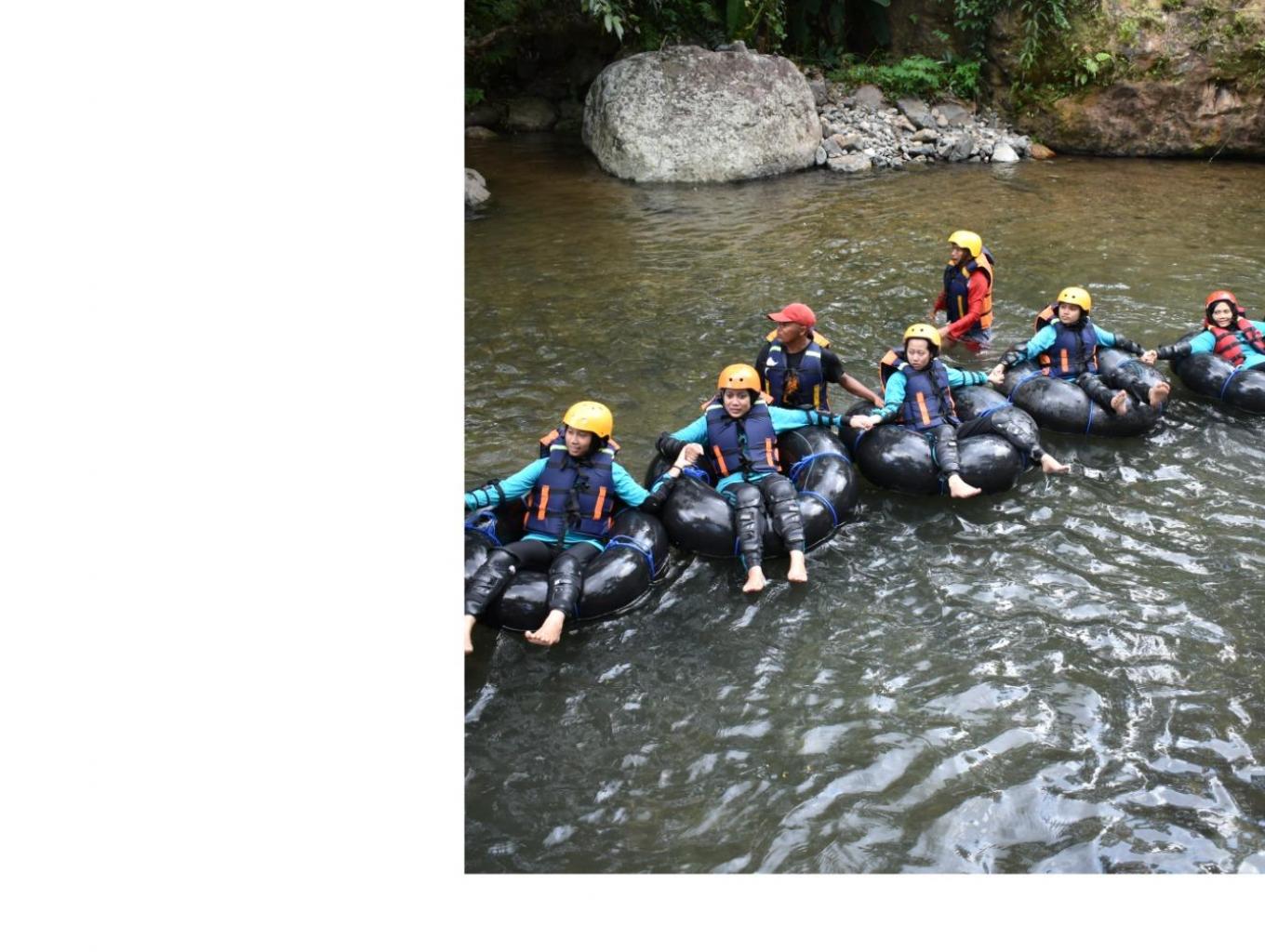 Wisatawan bermain river tubing di sungai Watulawang. River tubing ini dilengkapi dengan peralatan safety lengkap seperti helm, jaket pelampung, deker siku kaki dan tangan. Sebelum menyusuri sungai, wisatawan melakukan pemanasan dan briefing bersama tour guide. Wisatawan menyusuri sungai Watulawang menggunakan ban yang sudah dirakit hingga lokasi finish. Dari lokasi finish kembali ke lokasi start, para tour guide sudah siap menjemput menggunakan transportasi sepeda motor. Permainan ini sangat menyenangkan dilakukan bersama-sama keluarga, teman, rekan kerja maupun komunitas.