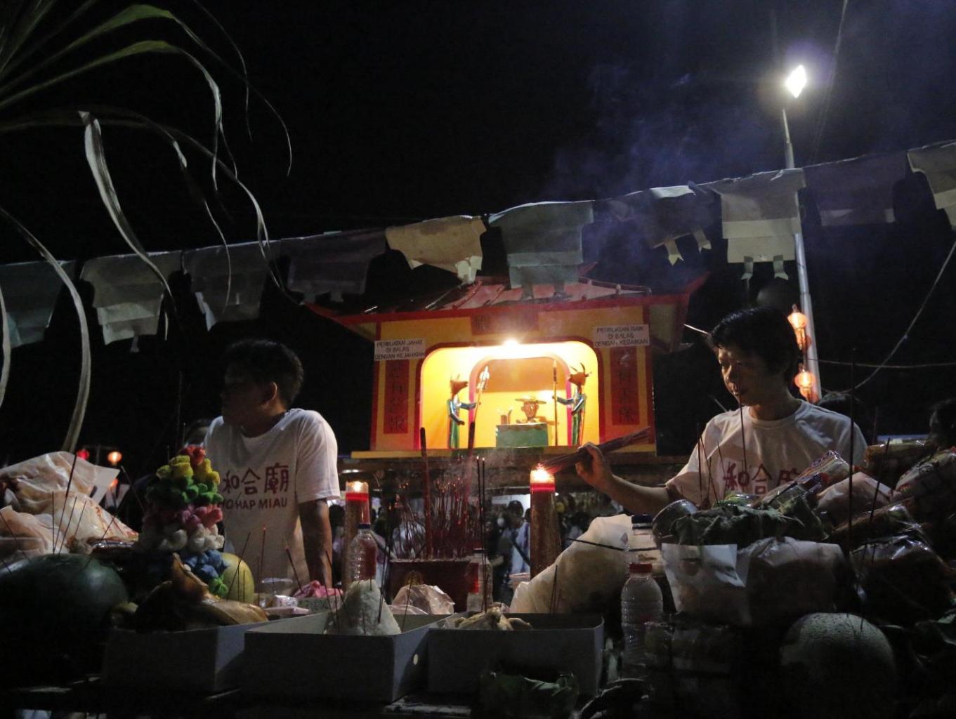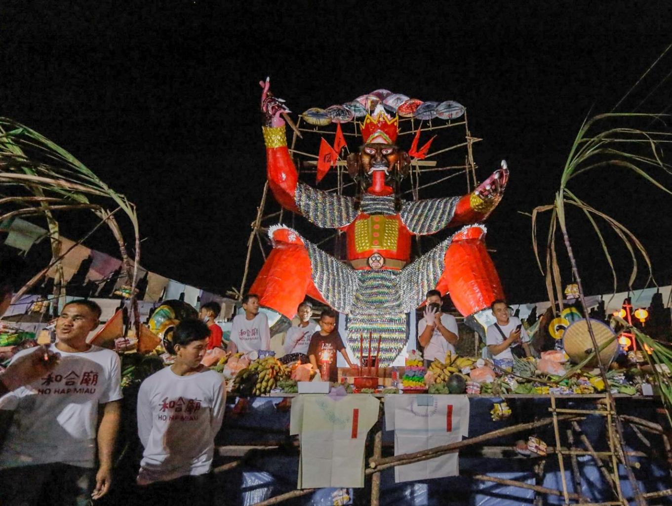 Rangkaian acara dari festival ini yaitu adanya doa-doa bagi umat Konghucu dan persembahan makanan hasil pertanian yang diisi di altar bersama patung raja hantu. Kemudian masyarakat dapat merebutkan makanan tersebut di altar sesajen. Sementara gangguan dan godaan umat manusia disimbolkan dengan dibangunnya replika sosok raja hantu tersebut pada akhirnya ke acara puncak yaitu membakar patung dan semua yang ada di altar tersebut, yang memberikan nuansa hangat di malam hari dengan kobaran api tersebut. Kegiatan ini dilakukan agar umat manusia dapat saling mengerti dan berbagi satu sama lain.
