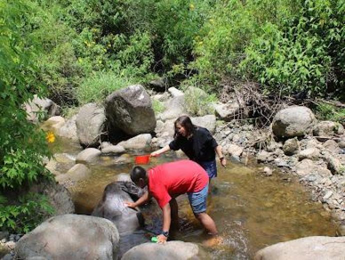 Memandikan Kerbau Di Sungai