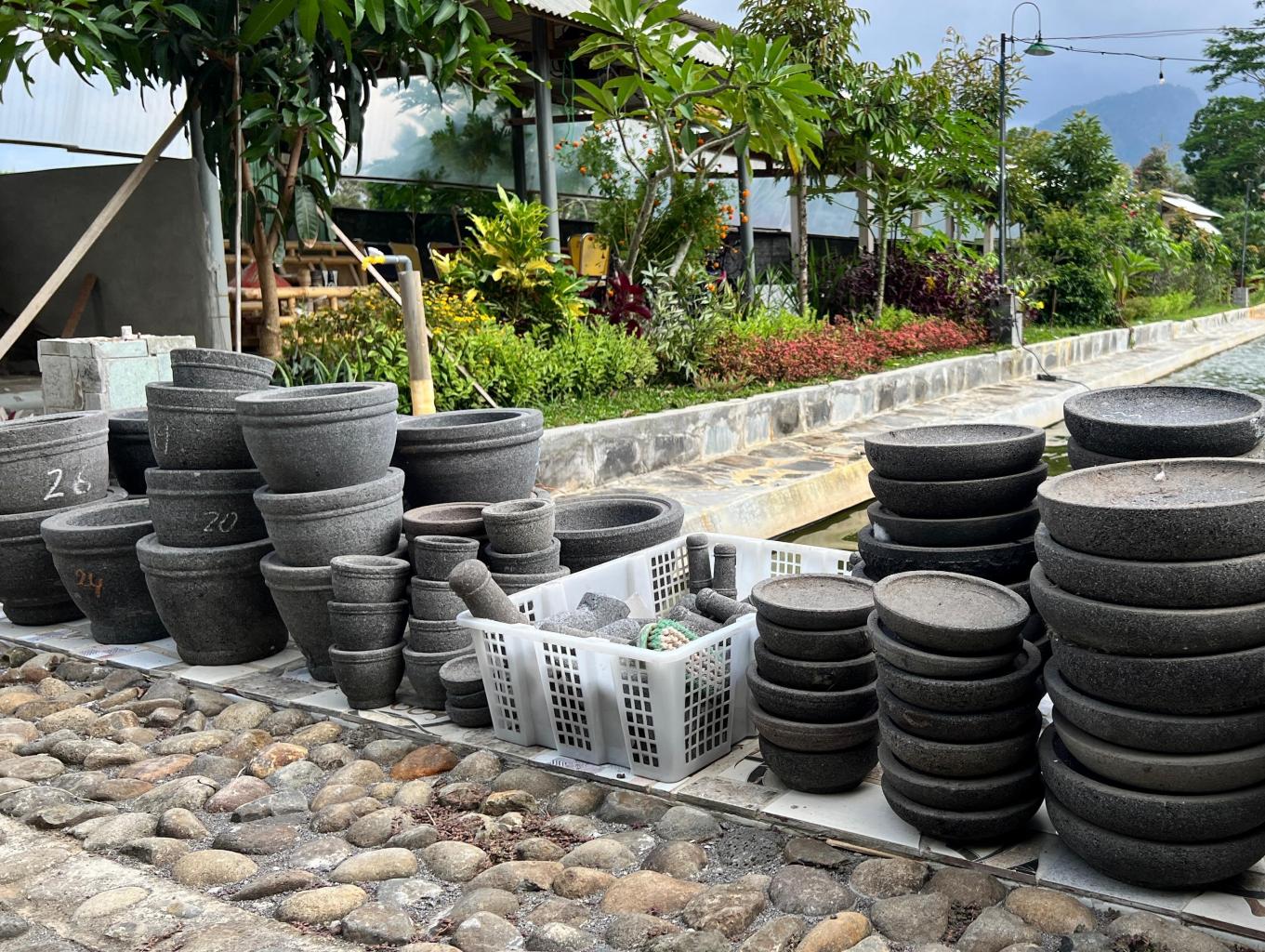 Cobek yang kami produksi asli terbuat dari batu kali dan kebanyakan batunya kita ambil dari Gunung Merapi