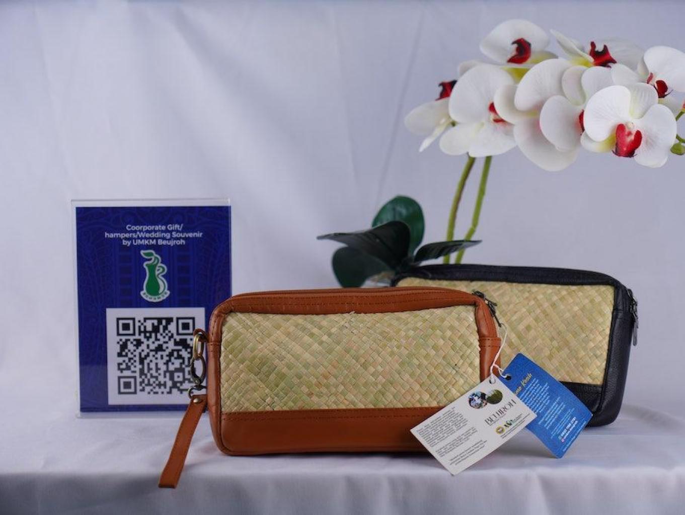 Pouch purun merupakan salah satu koleksi produk anyaman berbahan dasar purun yang dipadukan dengan kulit asli. produk ini tersedia dalam 2 variasi warna yang elegant.